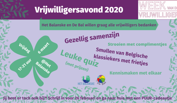 Het Balanske en De Bal bedanken alle vrijwilligers van harte voor hun inzet het afgelopen jaar, en de voorbije jaren. We nodigen jullie graag uit op vrijdag 6 maart tussen 17 en 21 uur.