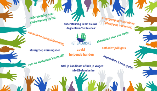 De werking van Het Balanske is alleen mogelijk dankzij de 250 vrijwilligers waarop wij kunnen rekenen. Met de komst van nieuwe initiatieven zijn we op zoek naar extra helpende handen en ondersteuning.