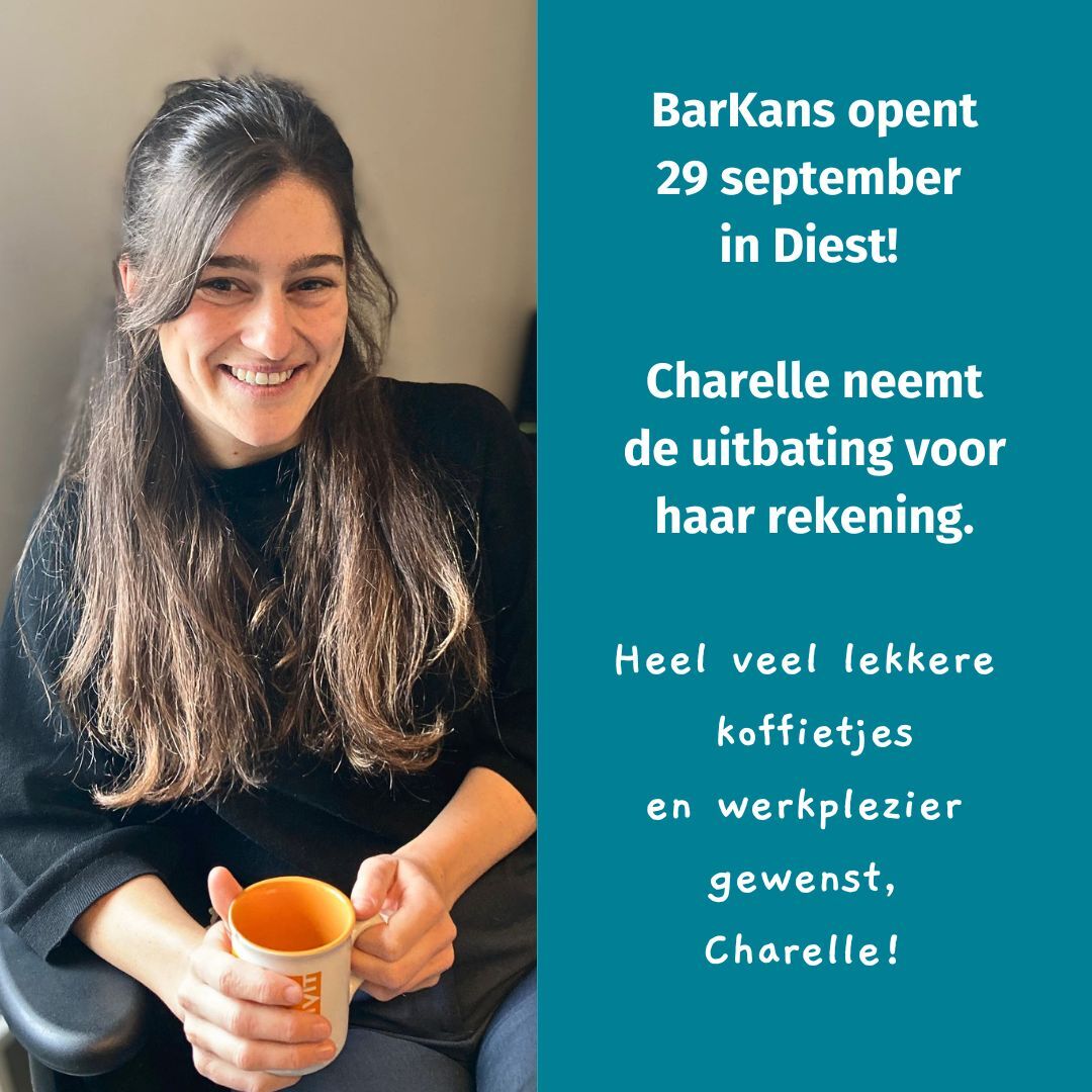 Bij BarKans zal ze instaan voor de dagelijkse werking van de koffie- en lunchbar. "Ik begeleid de medewerkers in hun taken en probeer hen te ondersteunen in hun groei en zelfvertrouwen. Samen willen we een plek creëren waar mensen zich welkom voelen: een warme werkplek voor onze medewerkers en een gezellige plek waar klanten graag langskomen voor een koffie of lunch."