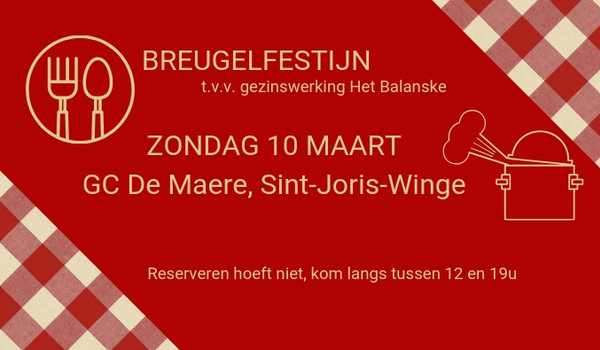 Wie houdt van Breugelen kan zondag 10 maart komen smullen in GC De Maere. Het Breugelfestijn is ten voordele van de gezinswerking.