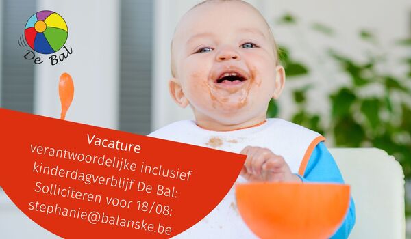Inclusief kinderdagverblijf De Bal is op zoek naar een verantwoordelijke. Stel je kandidaat voor 18 augustus.