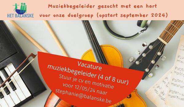 Voor de muzieklessen op zaterdag zijn we op zoek naar een muziekbegeleider. Solliciteren doe je voor 12 mei.